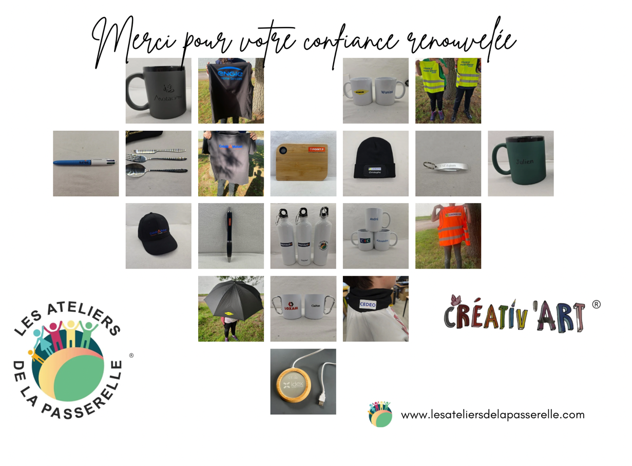 Les Ateliers de la Passerelle offrent une gamme complète de fournitures de bureau, produits d’hygiène et d’entretien, de bien-être, objets publicitaires et textiles personnalisables fabriqués et conditionnés par des travailleurs en situation de handicap.