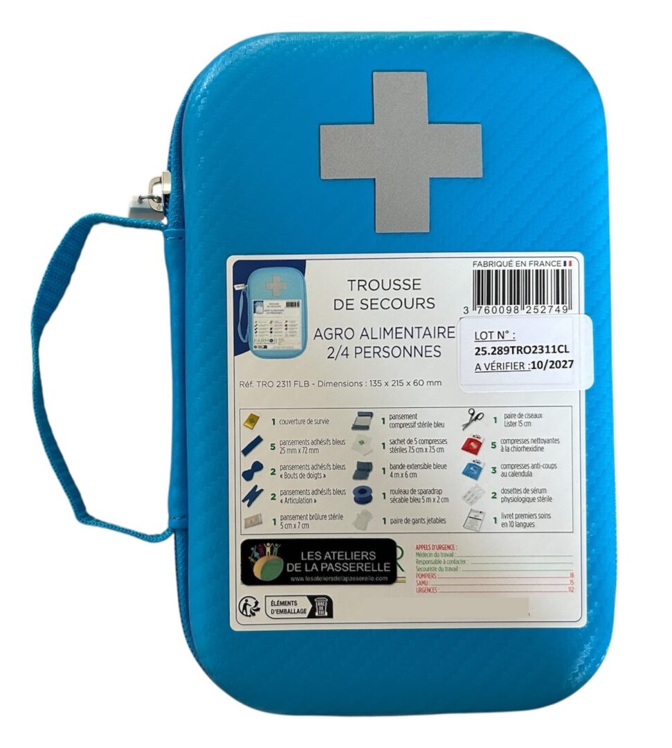 Trousse de secours agroalimentaire bleue – 2/4 personnes